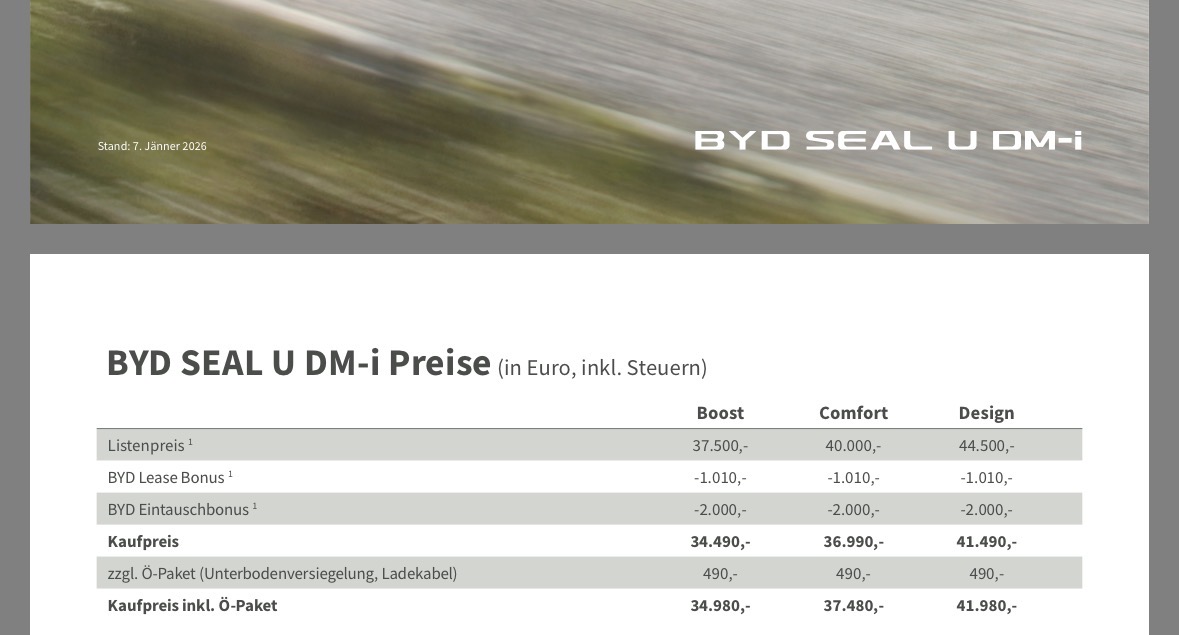 Anbei habe ich ein Foto von der Preisgestaltung der offiziellen BYD Deutschland und Österreich Seite angehängt!